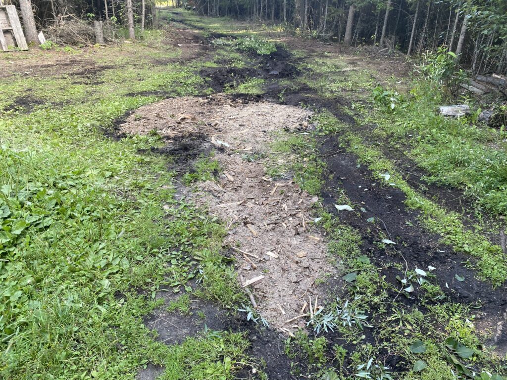 Saturday was yet another busy day. But we started with a nice breakfast with nice croissants (which is very important) and a nice walk with the dogs, during which we met some of our neighbors, a really nice, retired couple. Of course, Kima embarrassed me by jumping on the lady, who was wearing very pretty, light-colored linen pants, after playing in the water and dirt! Luckily, they did not mind, although I still find it difficult to assess the people here, because they are always so unbelievably friendly! Continuing the day, we installed the second dresser and drew the upper floor into CAD so we could continue our planning of the house itself. Once back, we let the cats out for the first time. Usually, you wait one to two weeks because they need to get used to the new house and everything. But they were so relaxed and really wanted to go outside that we decided otherwise. Kitty was the first to go and within a minute I could not find her at all anymore. Being afraid we might have made a wrong decision she showed up a minute later with a dead mouse. Within the first 10 minutes, she caught 3 more mice. Palin followed soon after and has been setting her perimeter ever since. She already has her standard round and is (we did not expect this) more outside than Kitty. Afterward, Sébastien used a large part of the day to cut away a lot of the small trees around the house and clear out the windows, to let more light into the house. In the late afternoon, we cleaned out the woodworking shed. We used the trees, Seb cut during the day to fill up one of the mud holes (arisen after all the driving and rain) and we did the same with the wood chunks from the shed. Not knowing that our temporary solution (which we came up with until we can lay a gravel road) would be put to the test this weekend already. The rest of the sawdust we put in boxes, to be used later as soil for the chickens and rabbits or for the outdoor toilet. We did not finish cleaning the sawdust; the evening was there, and my back was dead. We ate a very nice dinner: Gourmetting with pancakes. Which is basically baking pancakes on a small grill, where everyone can make their own variations they want, with bacon or cheese or both or with apples and so on. It is a very fun and cozy way of eating, but it takes up a lot of time. I think we ate for like two hours. After the cleaning and everything it again was 9 PM and we went to bed.