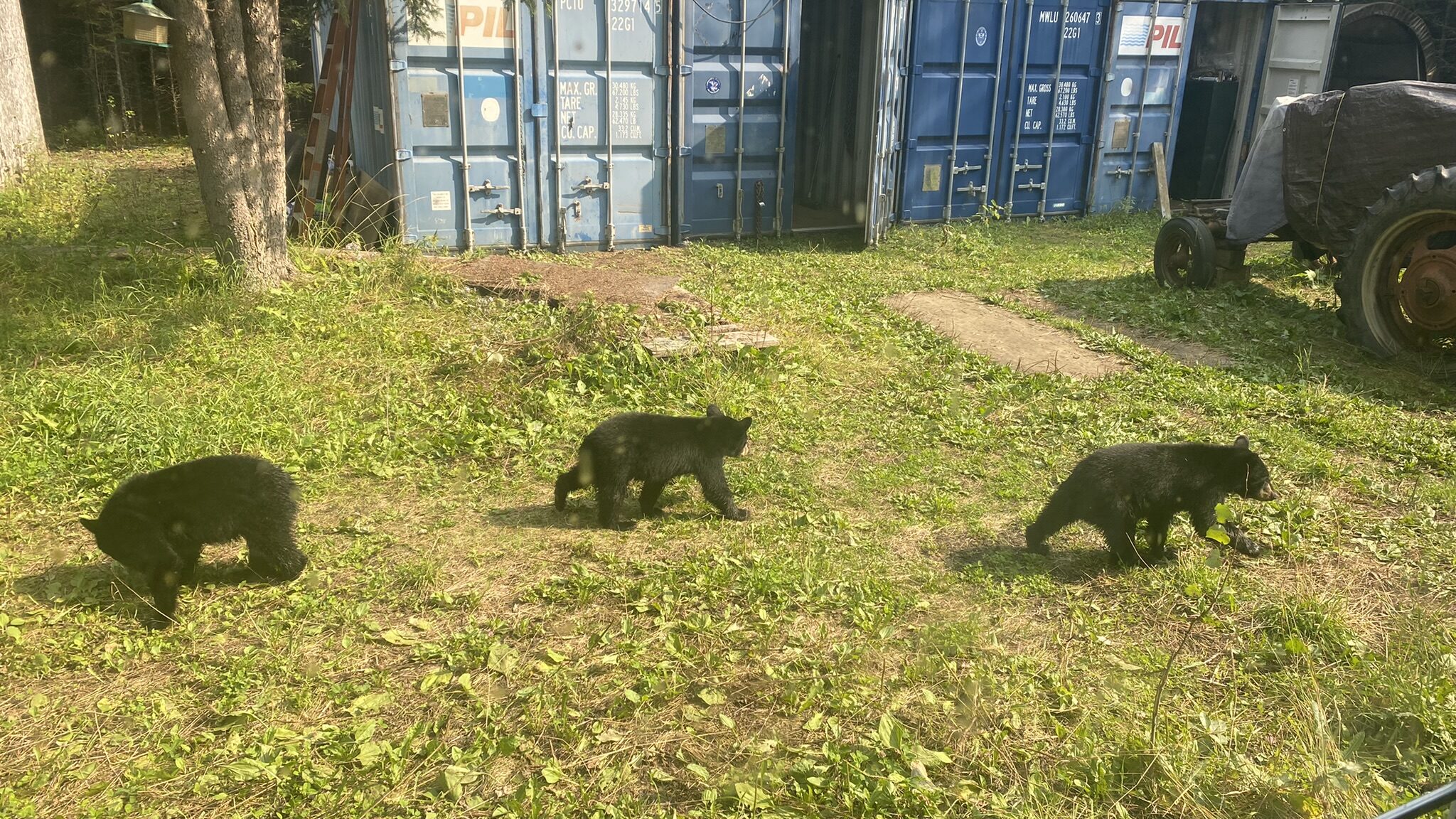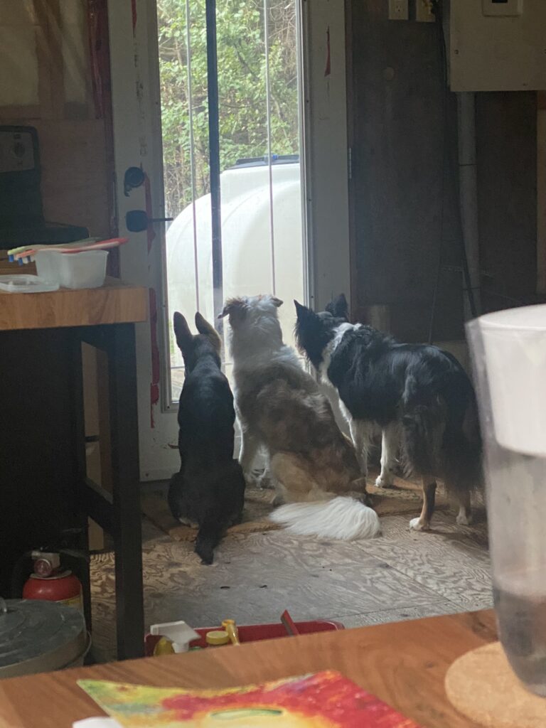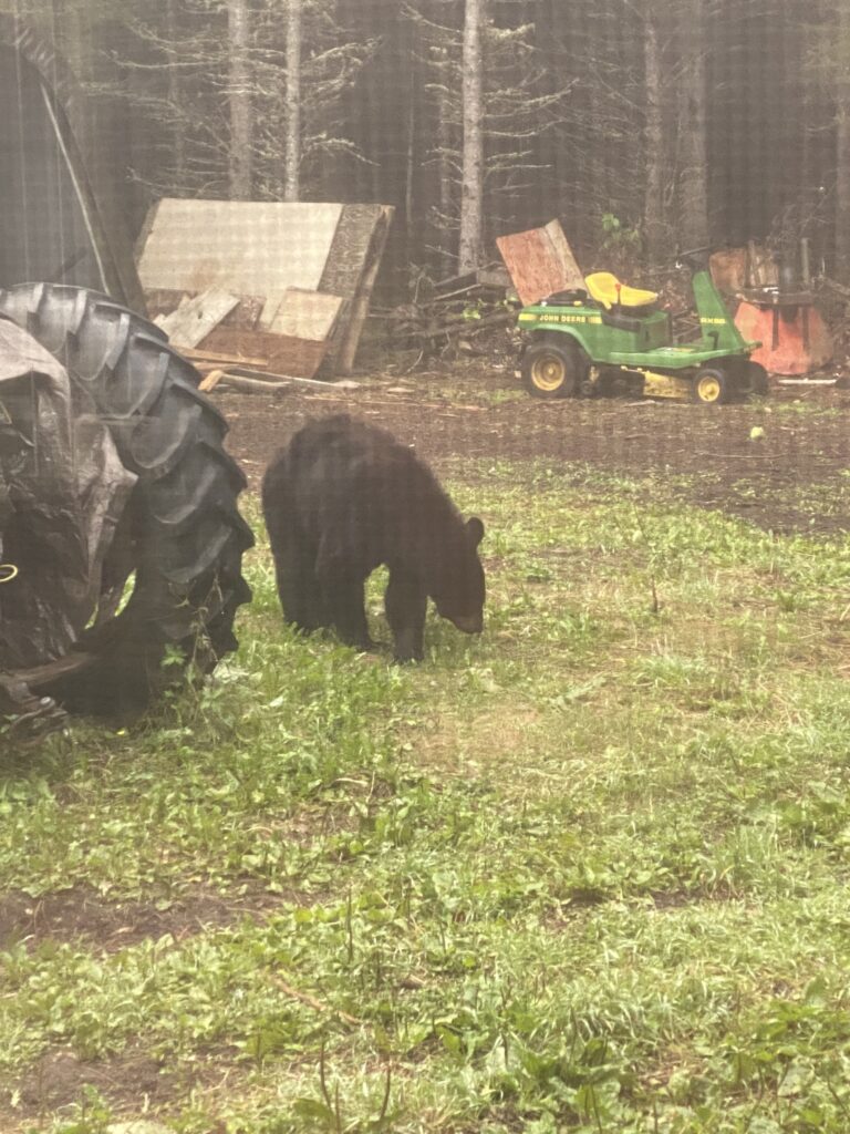 Last night and today, we had our first visitors. Bears… We had already seen pawprints at the entrance of our property, so we knew there were bears in the neighborhood. A mama and her cub. However last night she decided to visit us. This was our own, very dumb mistake. We had bought a closable bucket to put compost in it to start our compost. And clever us, thought to hang it outside our house so we wouldn’t have the smell inside and because we hung it up, small animals would not be able to get to it. However, we forgot the bears. We were already asleep when suddenly, Kima started growling and barking like crazy, Inti and Nayeli joined in, and they ran scared upstairs. So, the smallest dog, our puppy was the only one brave enough to keep barking in front of the door. We did not want to open the door, because we heard the bear trying to get the compost bucket open too. And there we were, half naked, with no guns, only a bear spray, and a glass door (of not too great quality), between us and a very impressive black bear. Seb tried to chase her away, by screaming through the window from upstairs, but she was not impressed. At some point, she managed to tear the bucket of the rope and took it with her. I must tell you that at that moment, you realize how small we humans are. But that is not all.