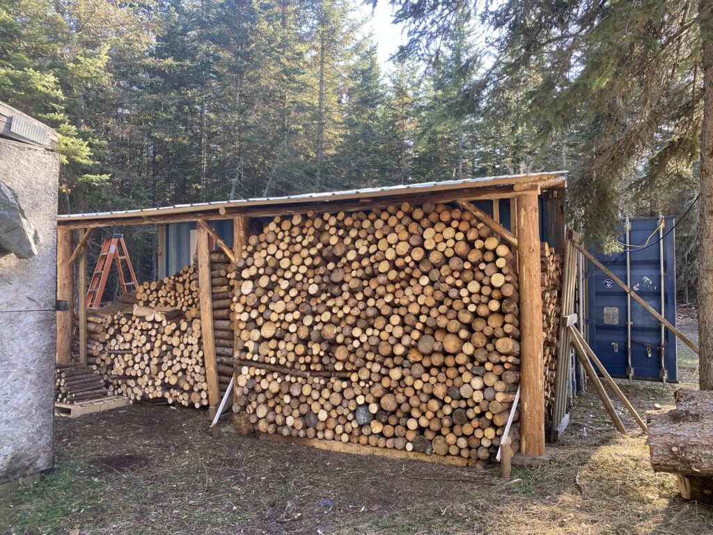 The second thing was buying firewood. We knew we wouldn’t have time to prepare and dry our own wood on time. 3 months is not enough for it to dry. So, for this winter we decided to buy 6 cords (4 spruce, 2 tamarack). Our estimates were too pessimistic. This winter has been pretty mild and writing this post now in March, we used only about half of what we stacked.