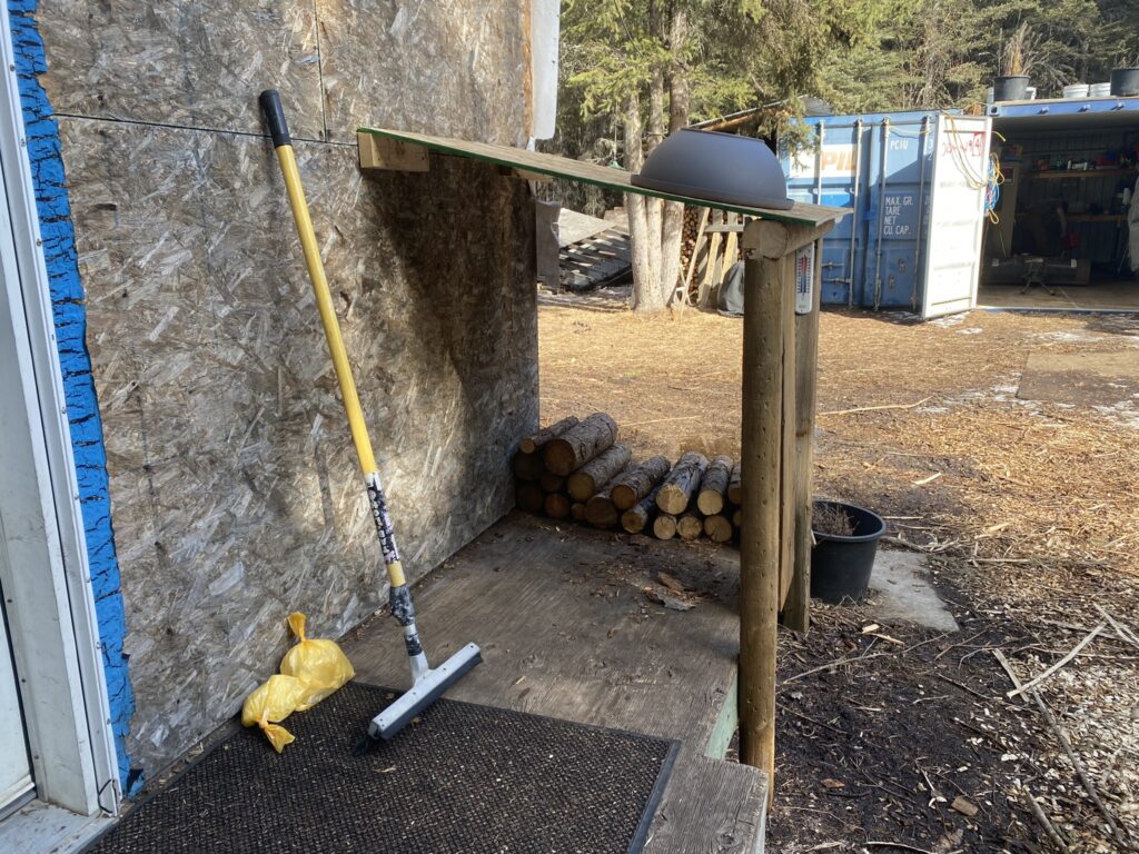 This winter, we decided to not buy a compost toilet for the inside. Prices right now are ridiculously high for a bit of plastic. We did with our outhouse. We were lucky to have a very mild winter which gave us lots of time to work outside. In January though, we had a week of -30 to -40 degrees Celsius, and even at this time going to the outhouse was not a big problem. Afterward, you would only have to stand in front of the stove for a minute to warm up your cooled-down buttocks. Otherwise, the body stayed nicely warm. Lucky us.